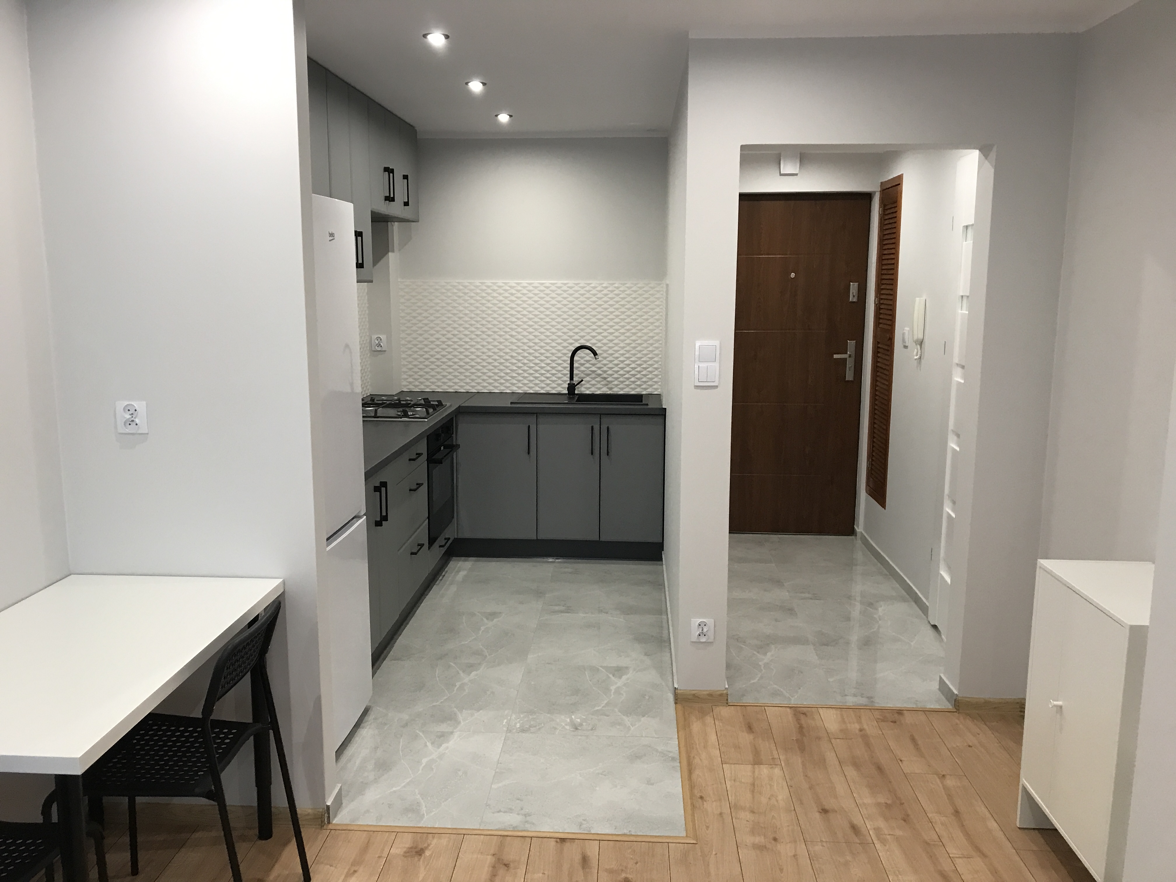 Mieszkanie po generalnym remoncie, funkcjonalnie urządzone i w pełni umeblowane: narożnik, stół z krzesłami szafki, druga kanapa do spania, biurko, duża szafa w zabudowie, stolik kawowy, pojemne szafki kuchenne, lodówka, kuchenka, piekarnik, duży TV SMART.. W łazience prysznic i pralka.
