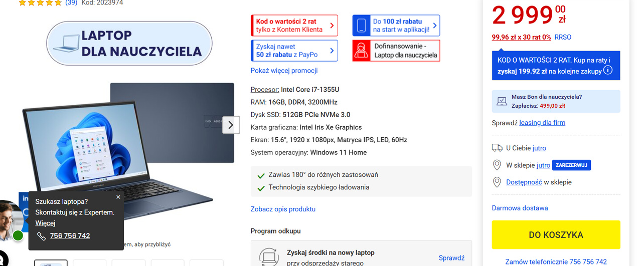 Sprzedam NOWY W PUDEŁKU laptop Asus 1504 V kupiony w MediaExpert cena sklepowa 2999, oferta za 2500 zł, tel. 665-043-845, odbiór własny