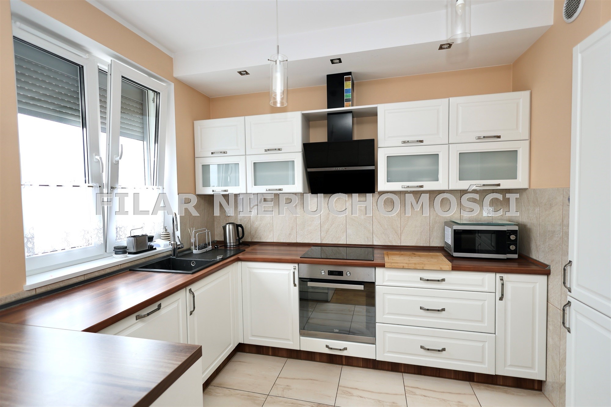 - kuchnia wraz z meblami w zabudowie oraz sprzętem AGD (lodówka, płyta elektryczna, piekarnik elektryczny, zmywarka 60-ka, mikrofala)