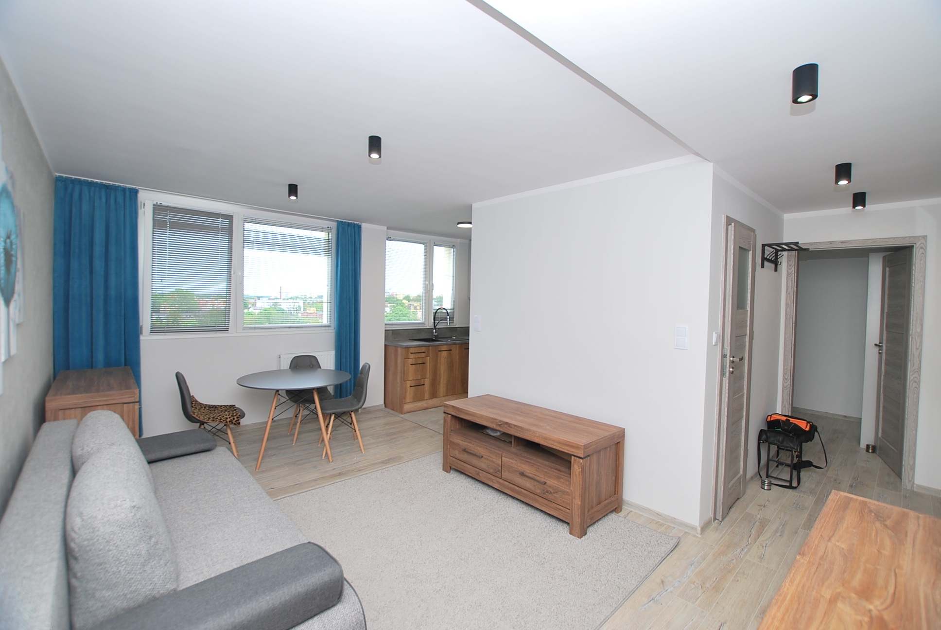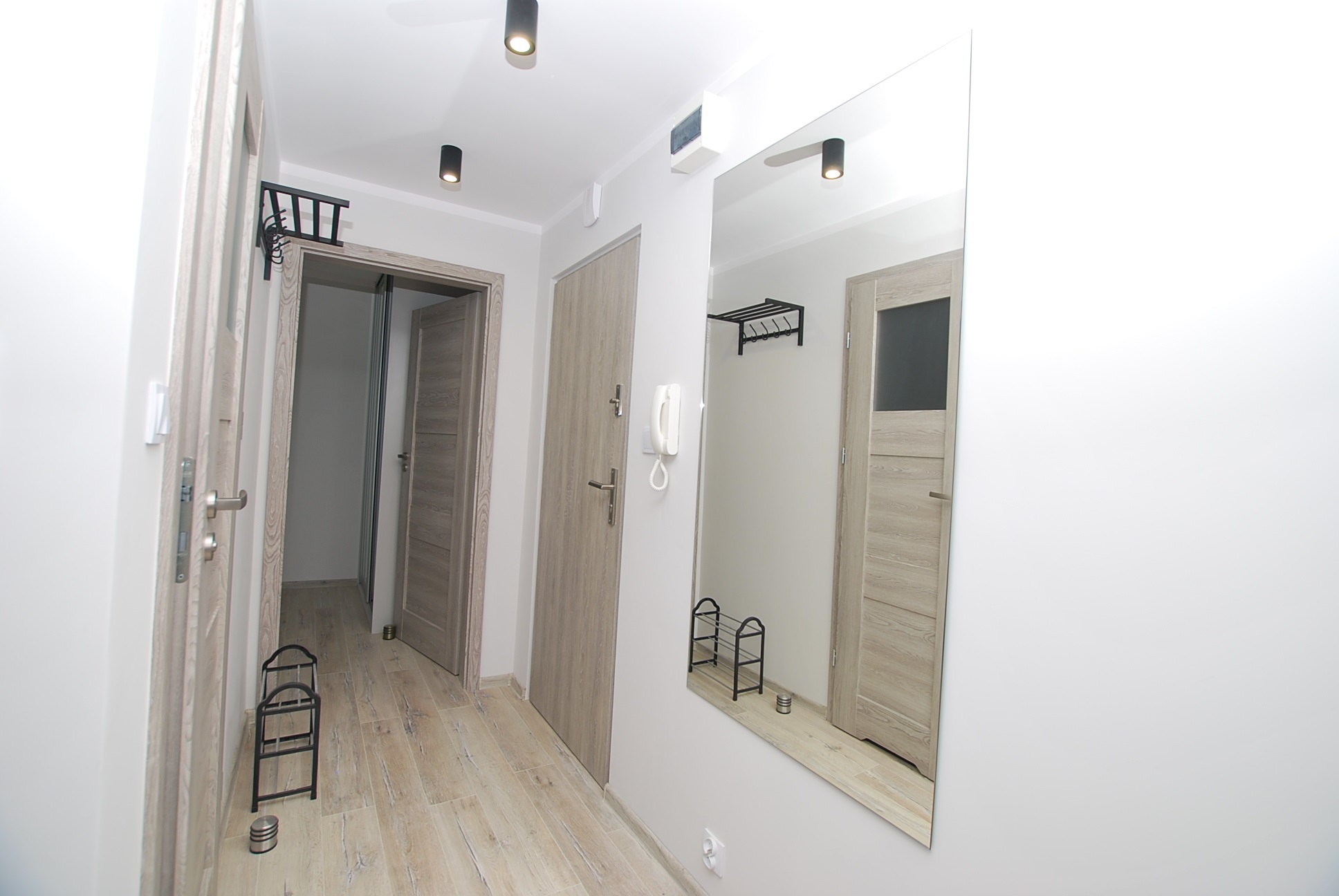 Nieruchomość składa się z kuchni otwartej na salon, sypialni z balkonem, łazienki z wc oraz przedpokoju.