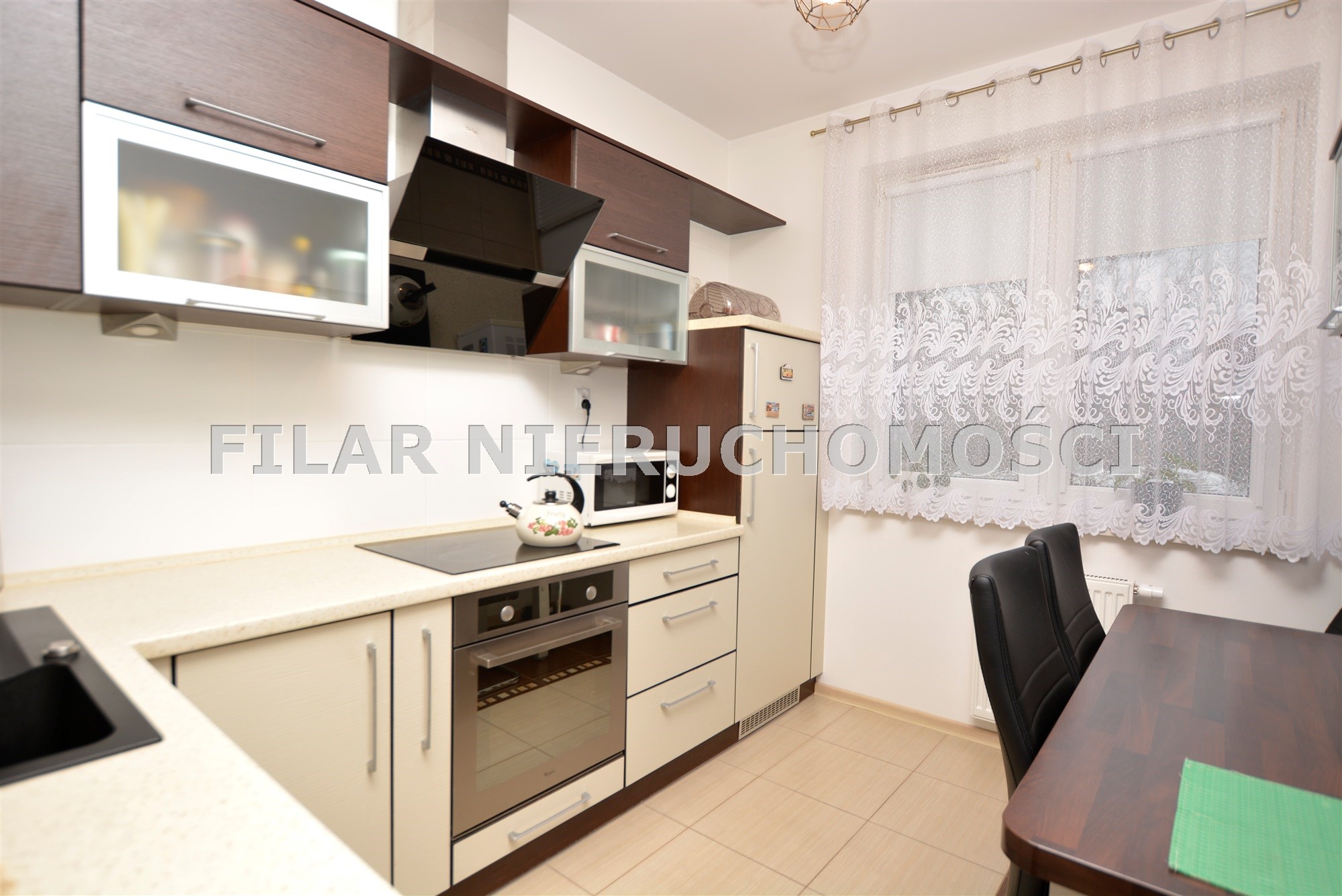 -Kuchnia z meblami w zabudowie wraz ze sprzętem AGD.
