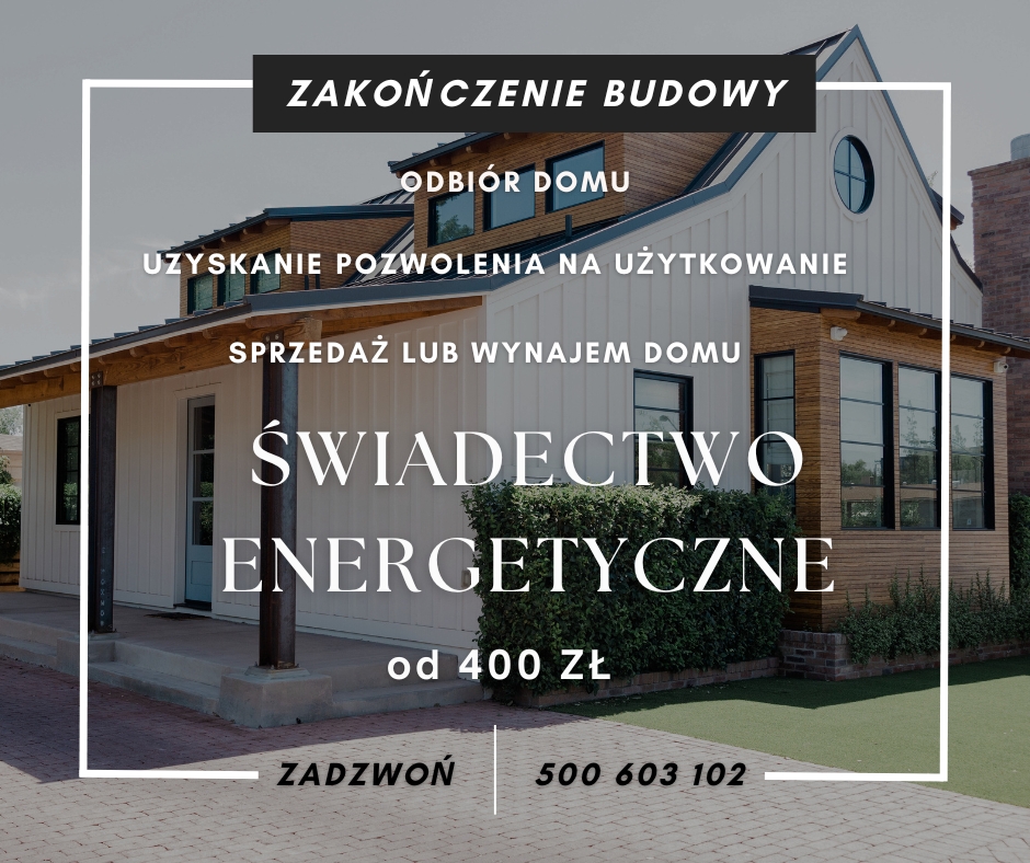 Wykonujemy świadectwa charakterystyki energetycznej na potrzeby WYNAJMU, SPRZEDAŻY nieruchomości, bądź ODBIORU BUDOWLANEGO - uzyskania pozwolenia na użytkowanie.