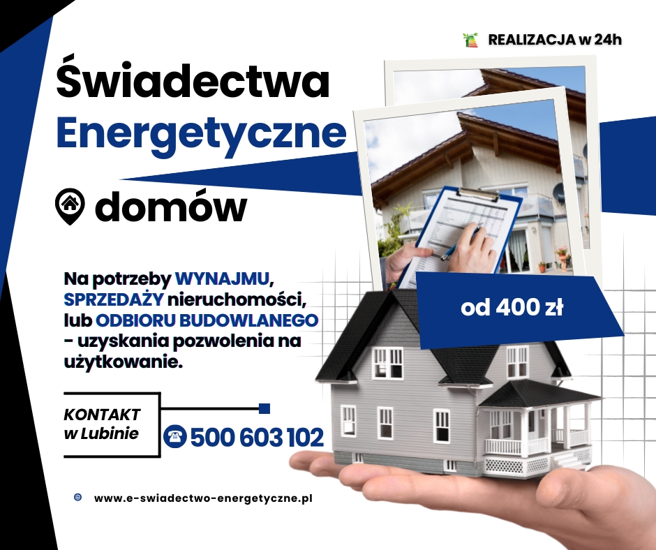 Wykonujemy świadectwa charakterystyki energetycznej na potrzeby WYNAJMU, SPRZEDAŻY nieruchomości, bądź ODBIORU BUDOWLANEGO - uzyskania pozwolenia na użytkowanie.