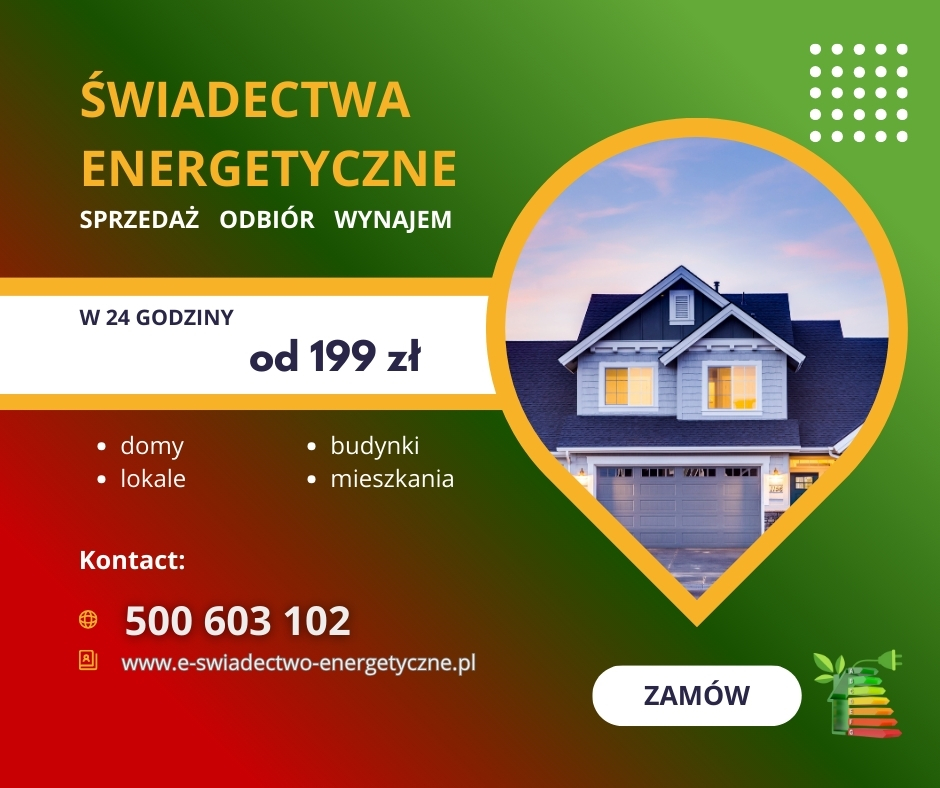 Chcesz zamówić świadectwo charakterystyki energetycznej? Jesteś w najlepszym miejscu ;) Gwarantujemy: najniższą cenę; najszybszy czas realizacji; pełną transparentność procesu; spełnienie wymogów prawnych; rzetelną jakość sporządzenia dokumentu; Zaufało nam już wielu klientów w lokalizacjach w całej Polsce! Dlatego TY też otrzymaj swoje świadectwo energetyczne sprawnie w 24h i bez ukrytych kosztów. W wersji drukowanej jak i elektronicznej PDF – szybko i wygodnie.