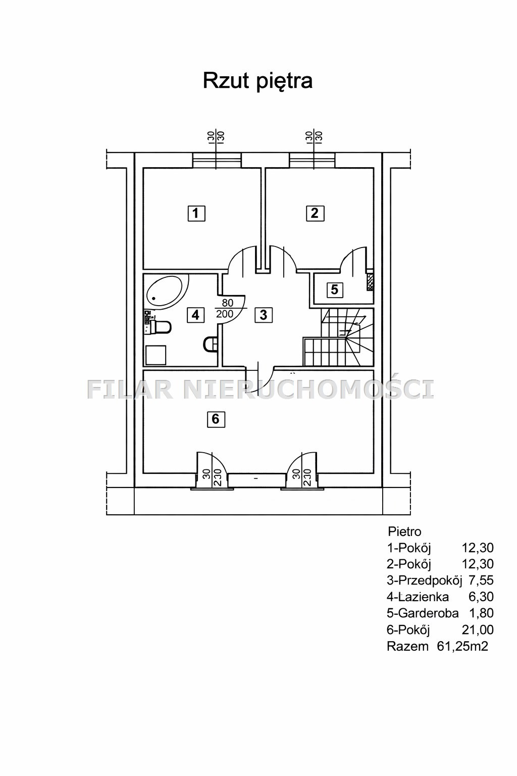 Wszystkie pokoje na poddaszu bez skosów, co wpływa na ich ustawność.