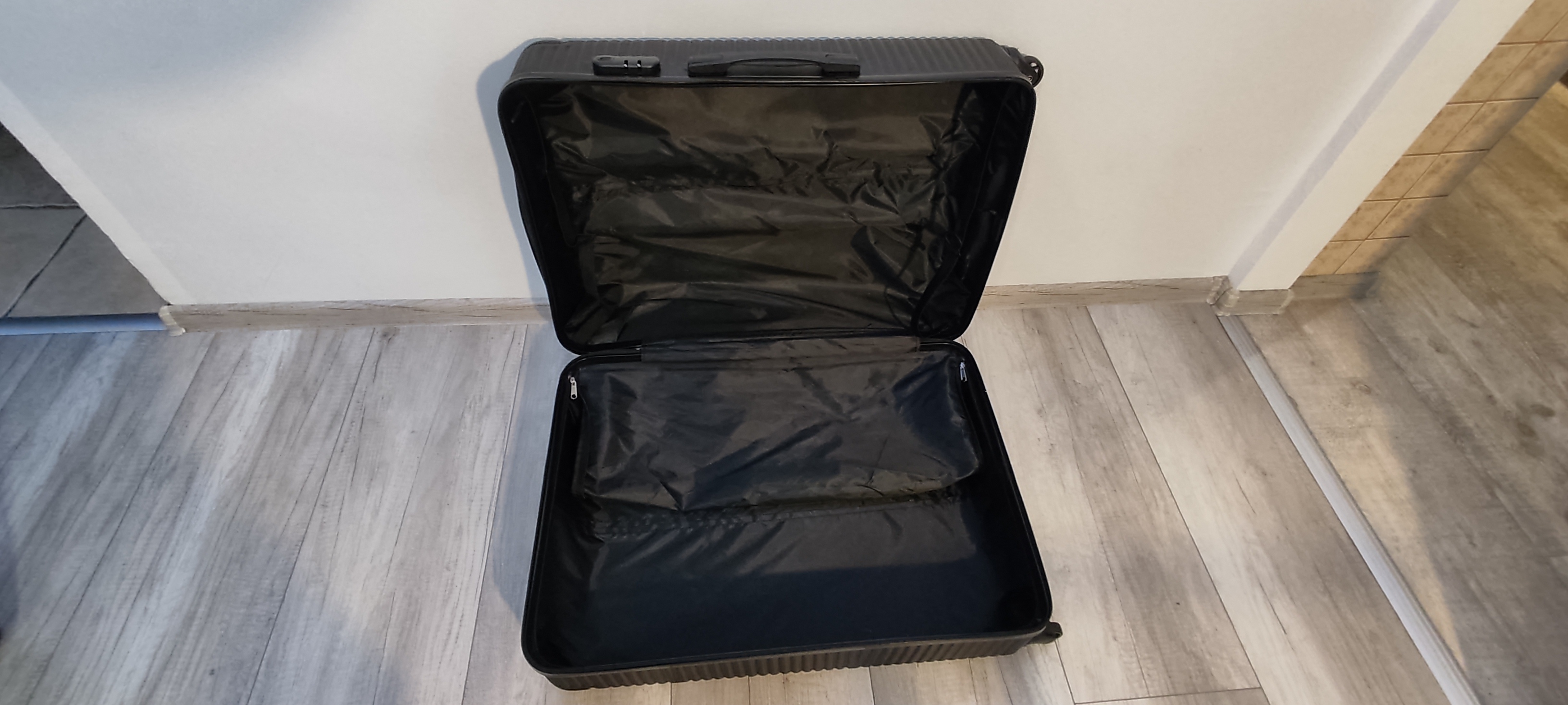 Mniejsza walizka ma uszkodzone dwa mocowania kółek jezdnych.Nadaje się do samodzielnej naprawy lub na części.Walizki użyte tylko jeden raz.Odbiór osobisty.Cena 100 zł. Tel.792 223 089.
